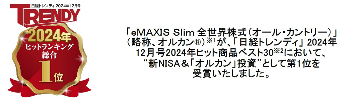 ※1 「eMAXIS Slim 全世界株式(オール・カントリー)」のことを略称として「オルカン」と呼ぶことがあります。「オルカン」は三菱UFJアセットマネジメント株式会社の登録商標です。